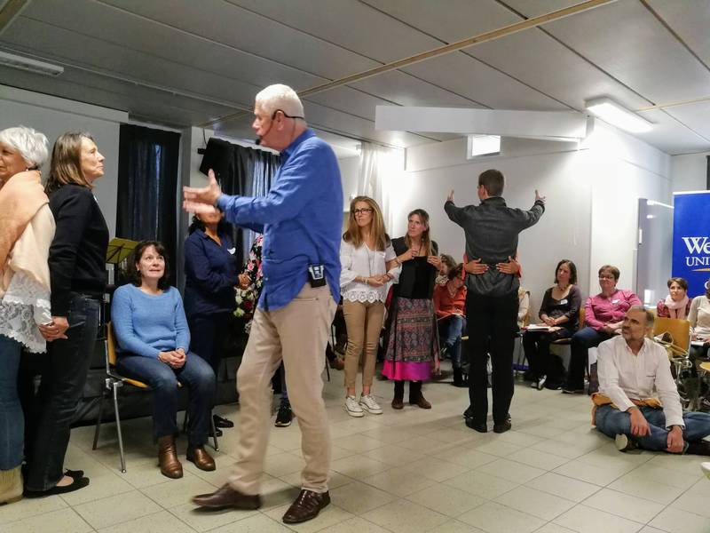 Frank Ostaseski is one of the leading voices in contemplative care of the dying. His programmes have introduced thousands to the practices of mindful and compassionate care of the dying. Our warmest thanks go to him and to his excellent translator Genevieve Hamelet. We also want to acknowledge Webster University who so kindly made available their large meeting room free of charge. We thank them and deeply appreciate their community spirit.